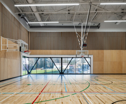 North Vancouver, BC Servicing the rapidly densifying Lynn Creek Town Centre, the new Lynn Creek Community Recreation Centre features a gymnasium, flexible community space, and a licensed childcare, across from the beautiful Seylynn Park. Photographs: Upper Left Photography